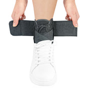 The laced enclosure design is easy to apply with figure of 8 strapping and an elastic cuff for adjustable compression.