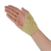 A one piece low profile wrap offering mild compression and support to the thumb CMC and MCP.