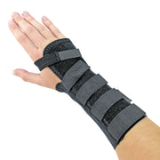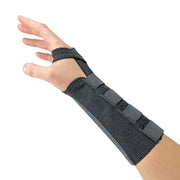 A longer, 23cm woven elastic/cotton support, with an aluminium stay inside a vinyl pocket and a longitudinal seam for excellent conformity to the wrist and forearm. Extends to two thirds of the forearm for radial/ulnar stability. Also available in black.