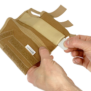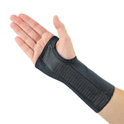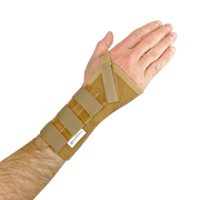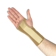 An 18cm long brace with cut-away design to allow flexion at the palmar crease and opposition of the thumb to the fingers. The soft Lycra binding prevents chafing of the thumb web. Longitudinal seam gives good conformity and support to the wrist and forearm. Also available in black.