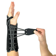 The lacing closure allows for easy one-handed application, while the palmar pad provides additional comfort and support. Available in both long and short versions.