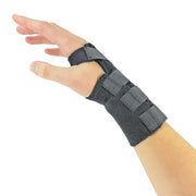 This support provides effective circumferential compression and support to the wrist whilst allowing full thumb and finger motion.